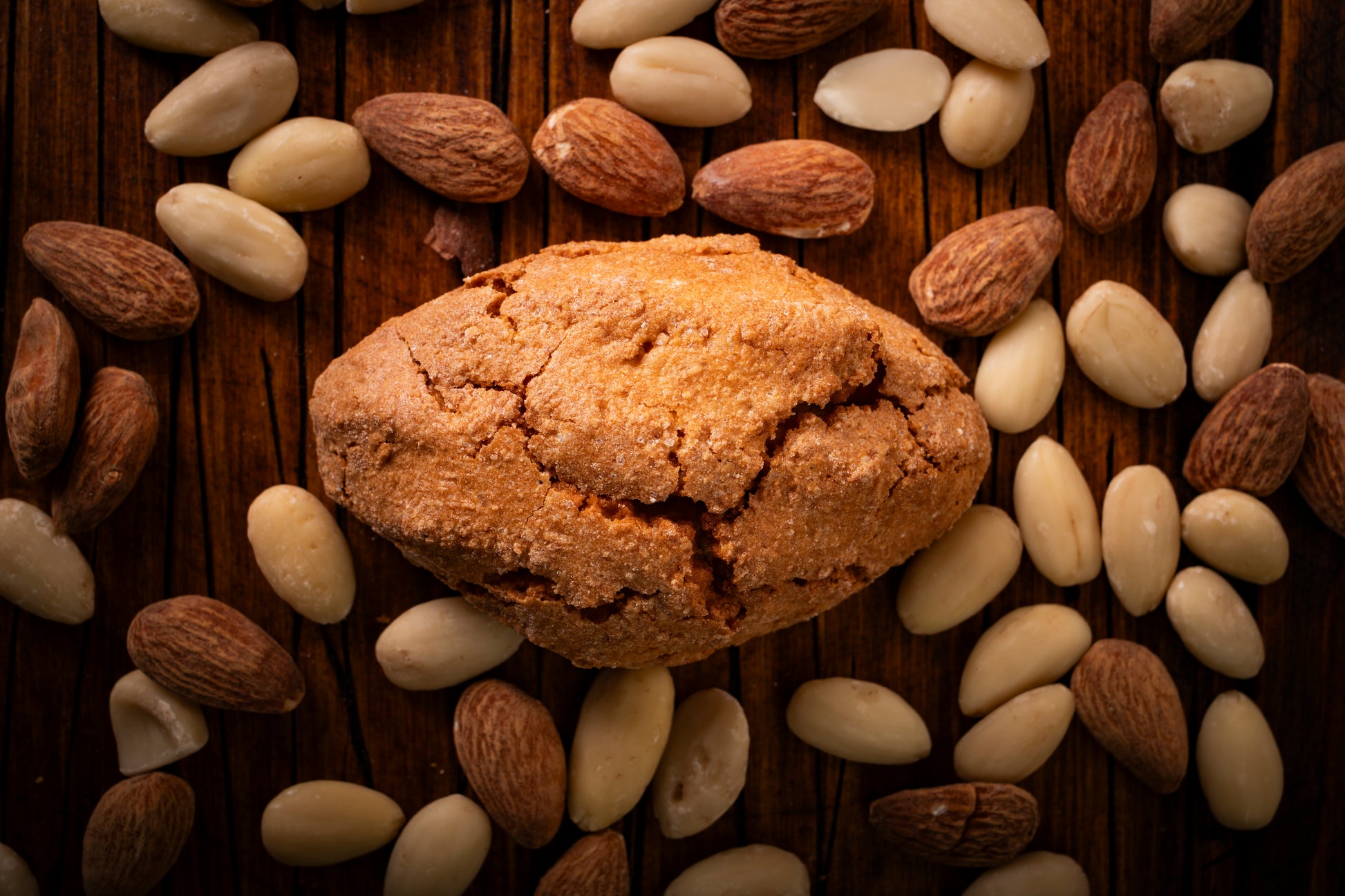Ingredienti: mandorle dolci e amare, zucchero, albumi freschi, ostie.
